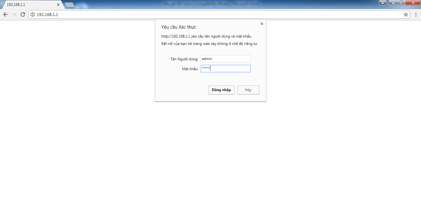 Lưu ý: Mõi loại modem sẽ có tài khoản , địa chỉ ip và giao diện khác nhau.