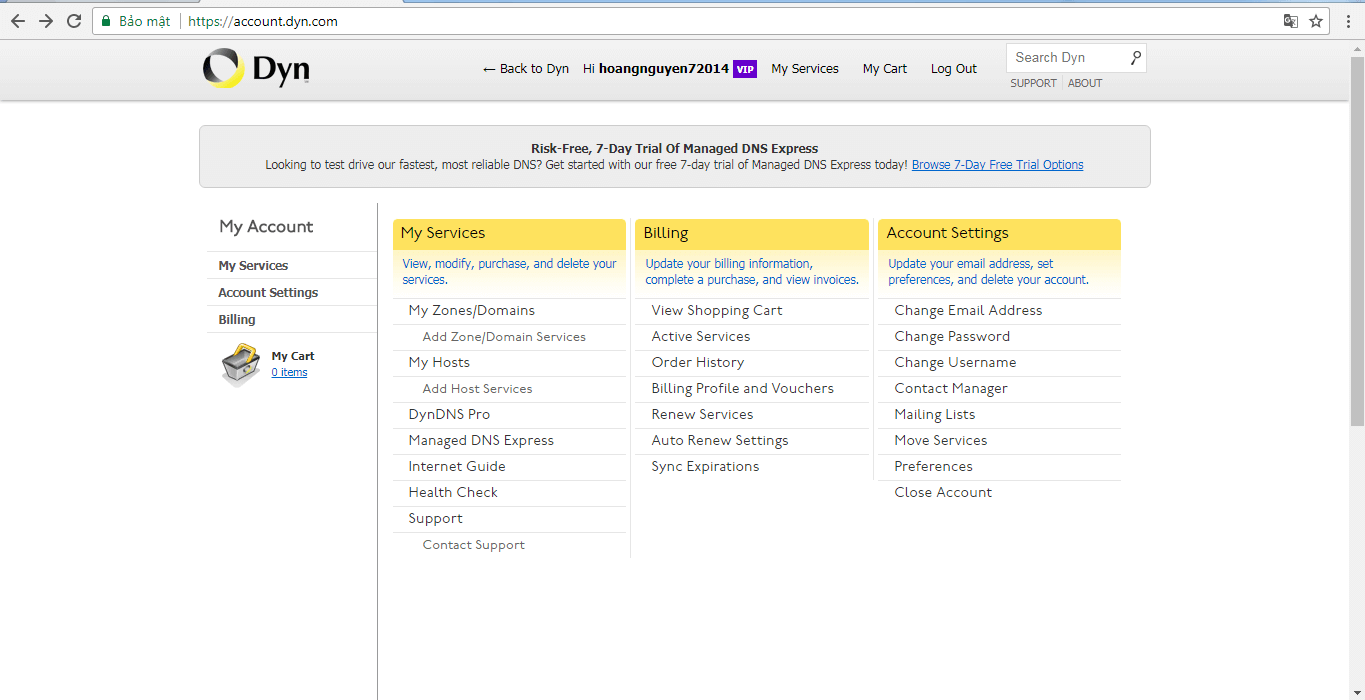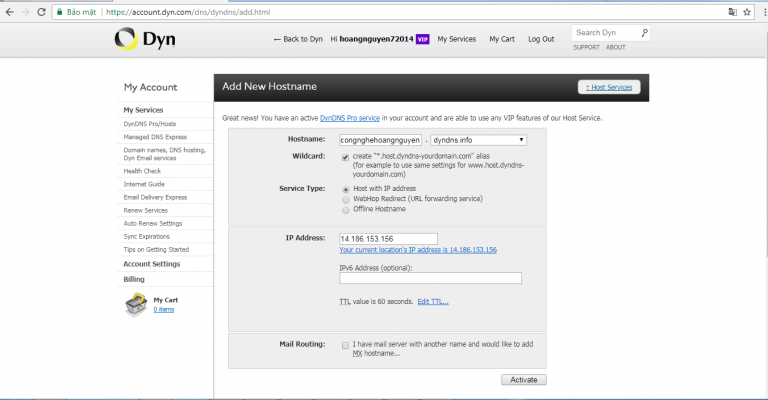 Tên đặng nhập và mật mã là tài khoản Dyndns của công ty. Sẽ được cung cấp khi tiến hành cài đặt 9.Tạo 1 tên miền trong tài khoản DyndnsMở trình duyệt web gõ dyndns.com sau đó đăng nhập vào tài khoản đã được công ty cung cấp