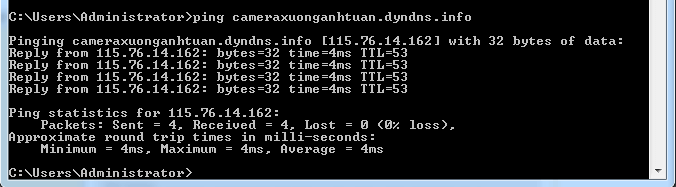 Đối với tên miểnMở giao diện CMD gõ lệnh: Ping + tên miềnVí dụ Ping congnghehoangnguyen.dyndns.info
