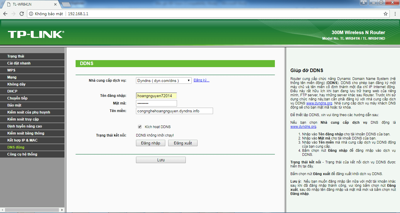 8.Gán tên miền Dyndns vào modemChọn tab DNS động