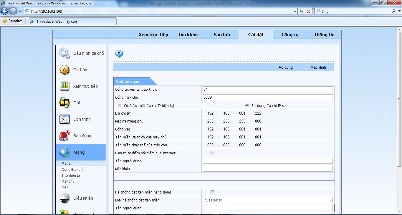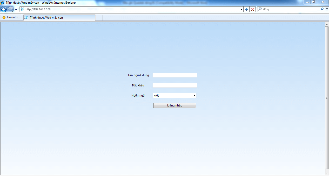 7.Sau khi dò được Ip của đầu ghi mở trình duyệt web Internet expoler. Gõ vào thanh địa chỉ http:// địa chỉ ip đầu ghiVí dụ: địa chỉ ip của đầu ghi là 192.168.1.108 thì chúng ta gõ http://192.168.1.108