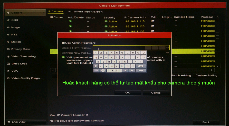 Use Admin Password để đặt mật khẩu camera giống mật khẩu đầu ghi