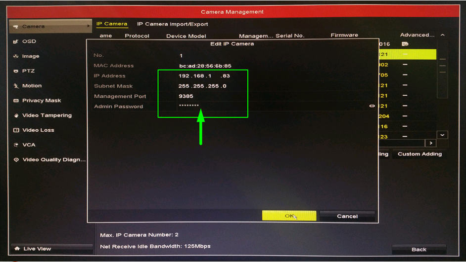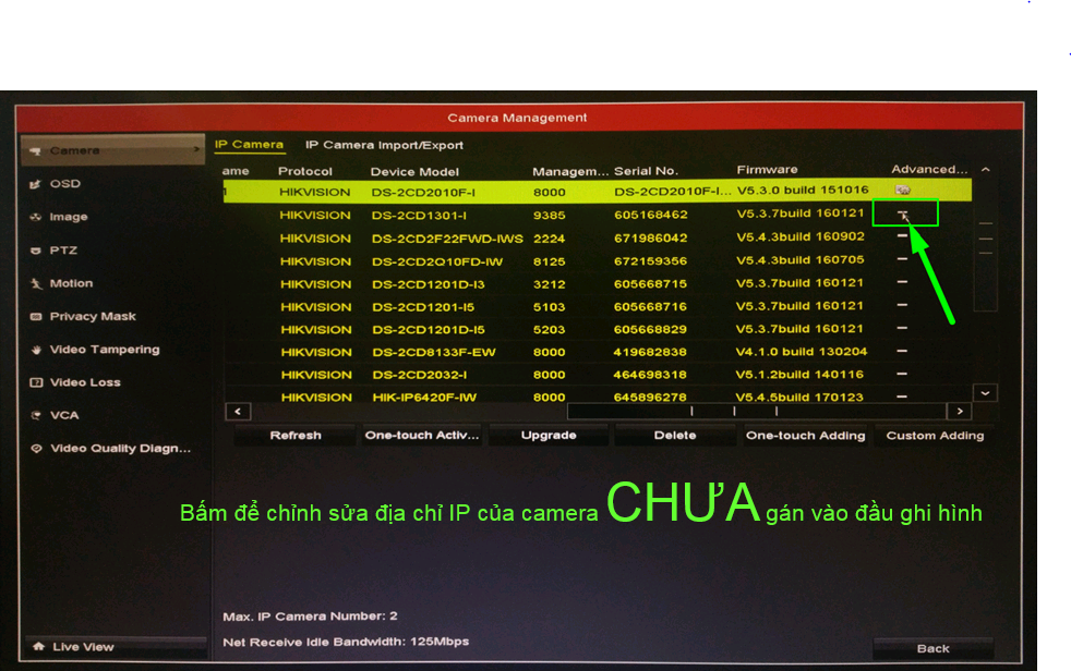 Chỉnh địa chỉ IP của camera chưa gán vào đầu ghi hình